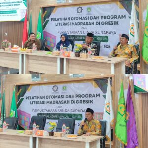 Gresik — MTs. Al-Azhar Menganti Gresik menyelenggarakan rangkaian kegiatan peningkatan mutu perpustakaan dan literasi madrasah bekerja sama dengan Perpustakaan UIN Sunan Ampel Surabaya. Program ini berlangsung selama empat hari, yaitu pada 21–22 November 2025 untuk Pelatihan Otomasi Perpustakaan dan 28–29 November 2025 untuk Pelatihan Penyusunan Buku Berjenjang dan Strategi Membaca.